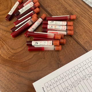 There are a few ways to test for pregnancy. Blood testing, palpation, and ultra sound. This year we chose to do a blood test. Luckily our friend Liz is experienced with this and agreed teach us. All we had to do was draw a small sample of blood. The easiest place to draw blood for this test is from the underside of the tail. Each cow was moved into a head gate, hold the tail up and some one drew the blood. Luckily the process went smoothly and we drew 16 samples. Now they just need to be packed up and sent to the lab. Hopefully we will have good news in 4-5 days!